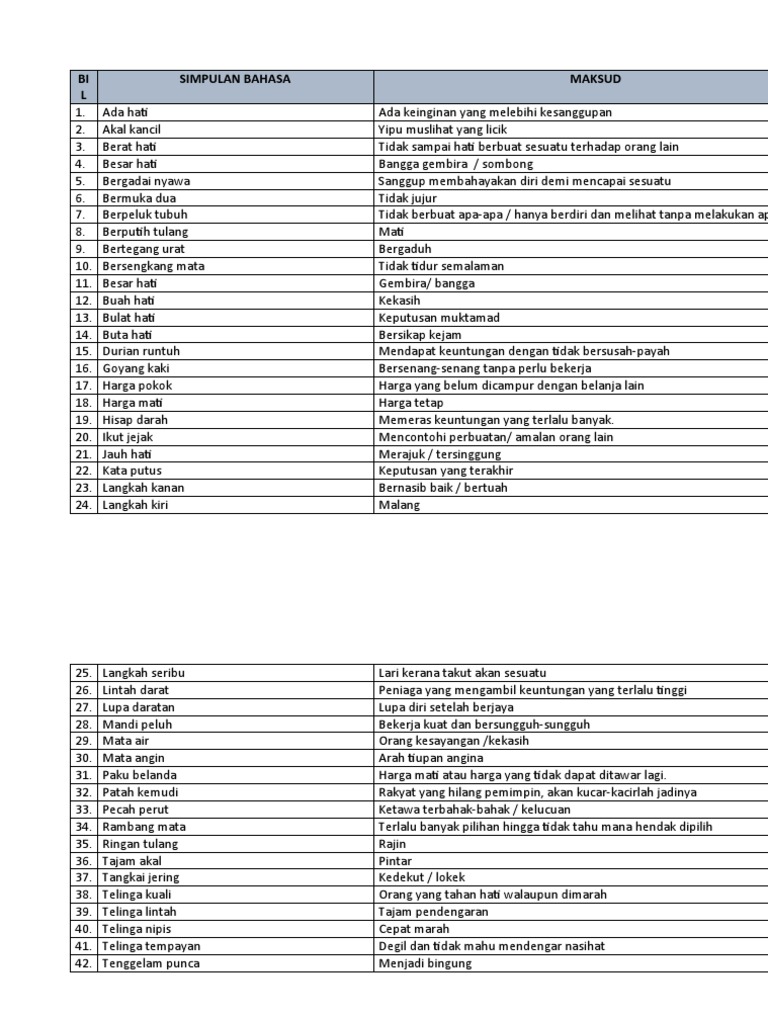 Koleksi Simpulan Bahasa Dan Maksud Simpulan Bahasa